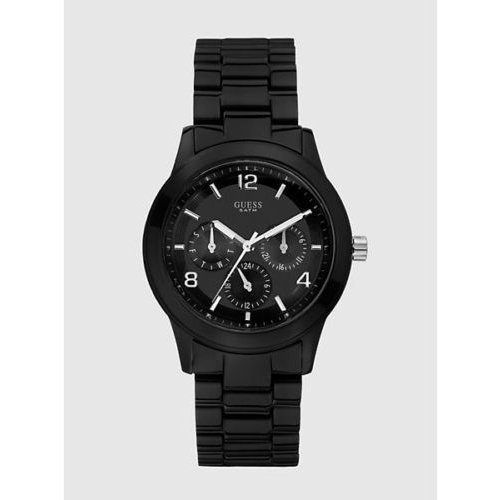 Band Color: Black Plastic; Band Width: 20mm near case; 20mm near clasp/buckle; Bezel Color: Black; Case: Black + Circle-shaped; Case Finish: Polished + Plastic; Case Thickness: 13mm; Case Width: 39mm; 41mm with crown; Clasp / Buckle: Fold Over Push Button Deployment; Dial: Black + analog; Hand ColorGuess U11644L7 Ladies Watch Do not Miss!! Band Color: Black Plastic; Band Width: 20mm near case; 20mm near clasp/buckle; Bezel Color: Black; Case: Black + Circle-shaped; Case Finish: Polished + Plastic; Case Thickness: 13mm; Case Width: 39mm; 41mm with crown; Clasp / Buckle: Fold Over Push Button Deployment; Dial: Black + analog; Hand Color... Guess U11644L7 Ladies Watch
